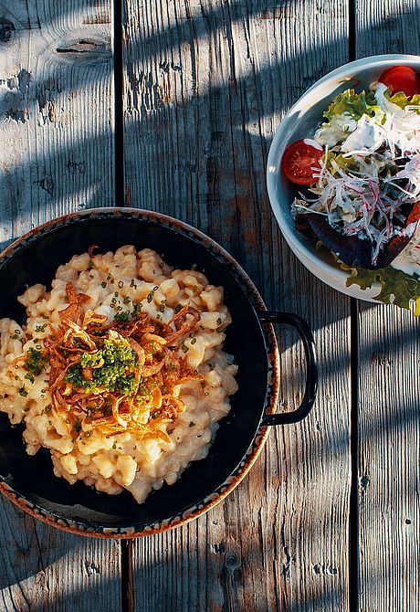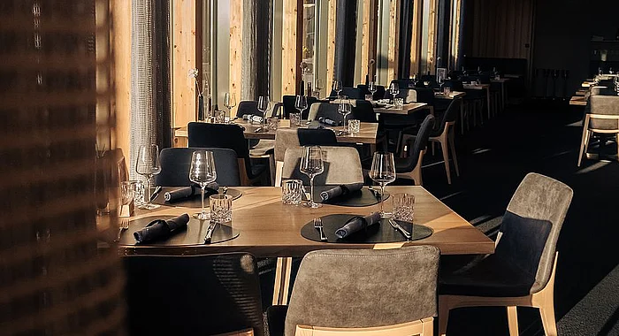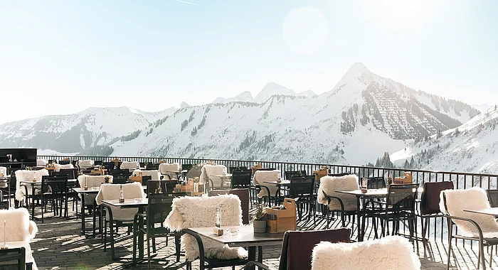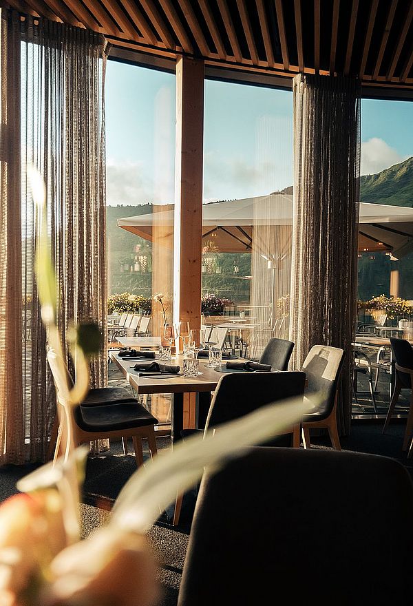 Enjoy the breathtaking views from our restaurant Genusshalde: The Damülser Horn, Zitterklapfen and Zafernhorn look down on you as you savour alpine dishes in the restaurant or something sweet on the sun terrace between skiing or after a mountain tour. Day guests can also be inspired by the high quality of Sandro Abel's cuisine with a daily changing 5-course menu.