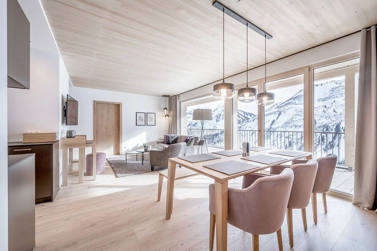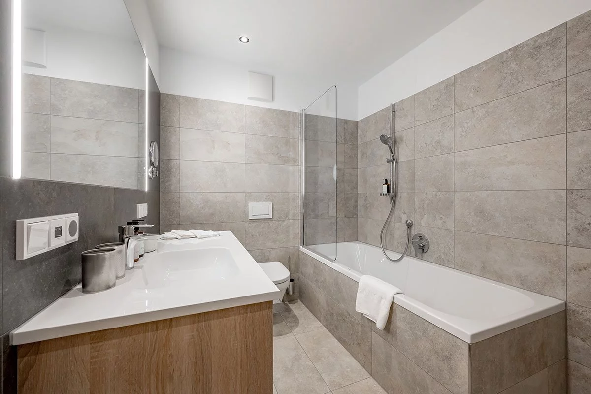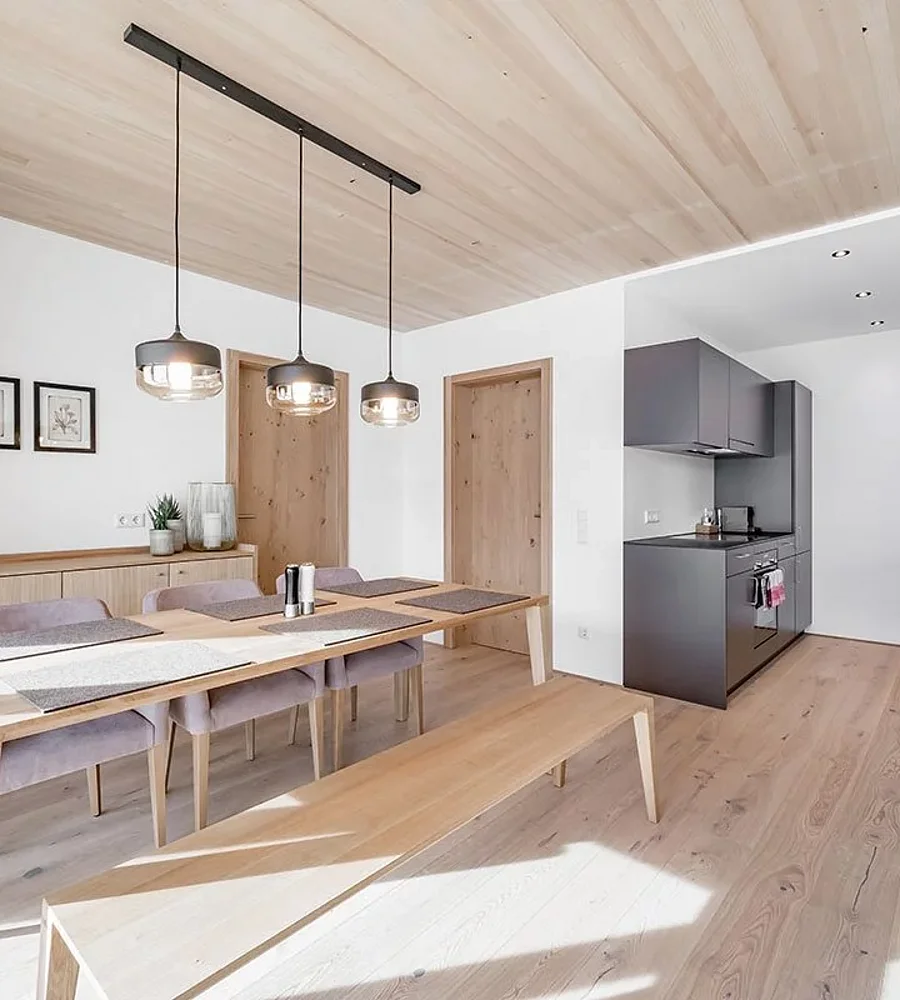 Licht, das durch das große Panoramafenster fällt. Der Süden vor Ihnen, die Berge ganz nah. Hochwertige Materialien, klare Linien, alpine Wärme. Im Boxspringbett zur Ruhe kommen, im offenen Wohnraum zusammenfinden, in der Küche Zeit verlieren. Zwei Bäder, viel Raum, kein Müssen. Auf dem Balkon die frische Luft einatmen, den Blick schweifen lassen. Ein Ort mit Herz und Haltung – für gemeinsame Tage, die bleiben.